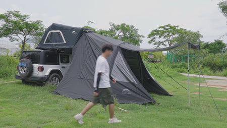 Das Wild Land Annex A ist ein einfach aufbaubares Vorzelt für ihr Autodachzelt Wild Cruiser 160. Es kann mit der Wild Land Dachzelttraufe kombiniert werden, um zusätzlichen Lebensraum für Outdoor-Camping zu schaffen. Die silberne Beschichtung sorgt für eine hohe UV-Beständigkeit. Das robuste 210D Rip-Stop-Gewebe macht es stabil und langlebig. Camping-Enthusiasten, Overlander, Wanderer und erfahrene Off-Roader wissen, wie komfortabel und wichtig ein zusätzlicher Raum in der freien Natur sein kann. Dieser Anbau ist riesig und bietet nicht nur Platz zum Umziehen oder zum Verstauen von Taschen und anderer Ausrüstung, sondern wird auch zum Wohnzimmer. Stellen Sie einfach Ihr Zelt auf, befestigen Sie das Vorzelt, und schon haben Sie einen riesigen Wohnbereich, in dem Sie sich hinsetzen, essen, etwas trinken oder einfach die Aussicht genießen können, während Sie vor der brennenden Sonne oder dem strömenden Regen geschützt sind. Wenn Sie drinnen sitzen, werden Sie spüren, wie schön und großartig Camping sein kann. Es bietet nicht nur einen persönlichen Schutz, sondern ist auch ein zusätzlicher Raum für Ihre Campingfreizeit. Im wahrsten Sinne des Wortes, einer der besten Vorzelte auf dem Markt, ein einzigartiges Produkt, das Wild Land wieder einmal charakterisiert und von den anderen unterscheidet!