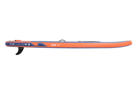 Das Flare 10.8 ist die leichtere und etwas einfachere Version des Flare Pro. Das Board ist für viele Einsatzbereiche geeignet und wird fast jedem Allround-Anspruch gerecht. Der Shape mit der breiten Standfläche und der schlanken Nose geben dem Board Standstabilität auch bei geringen Geschwindigkeiten, was das Spielen auf dem Wasser erleichtert. Die Form eines langen Tropfens lässt das Board aber auch gut gleiten. Da die Standfläche viel Volumen hat, trägt das Board auch etwas mehr Belastung. Die grosse EVA Standfläche ist mit einem trittsicheren Prägemuster ausgestattet. Das Board kann bei Niedrigwasser mit einer Flexfin gefahren werden, ohne die Gefahr das Finnen abbrechen. Somit ist man auch auf Flüssen gut unterwegs. Die Woven Dropstitch Konstruktion ist äusserst leicht und damit auch leicht zu tragen. Die Double Sidewall ist robust, schützt das Board vor Abrieb und macht das Board zusätzlich noch etwas steifer. Das mitgelieferte Zubehör lässt sich komplett im Backpack verstauen und somit auch gut transportieren. Dank der sehr leichten Konstruktion ist die Flare Line gut für SUP Trips mit ÖV Nutzung geeignet.
