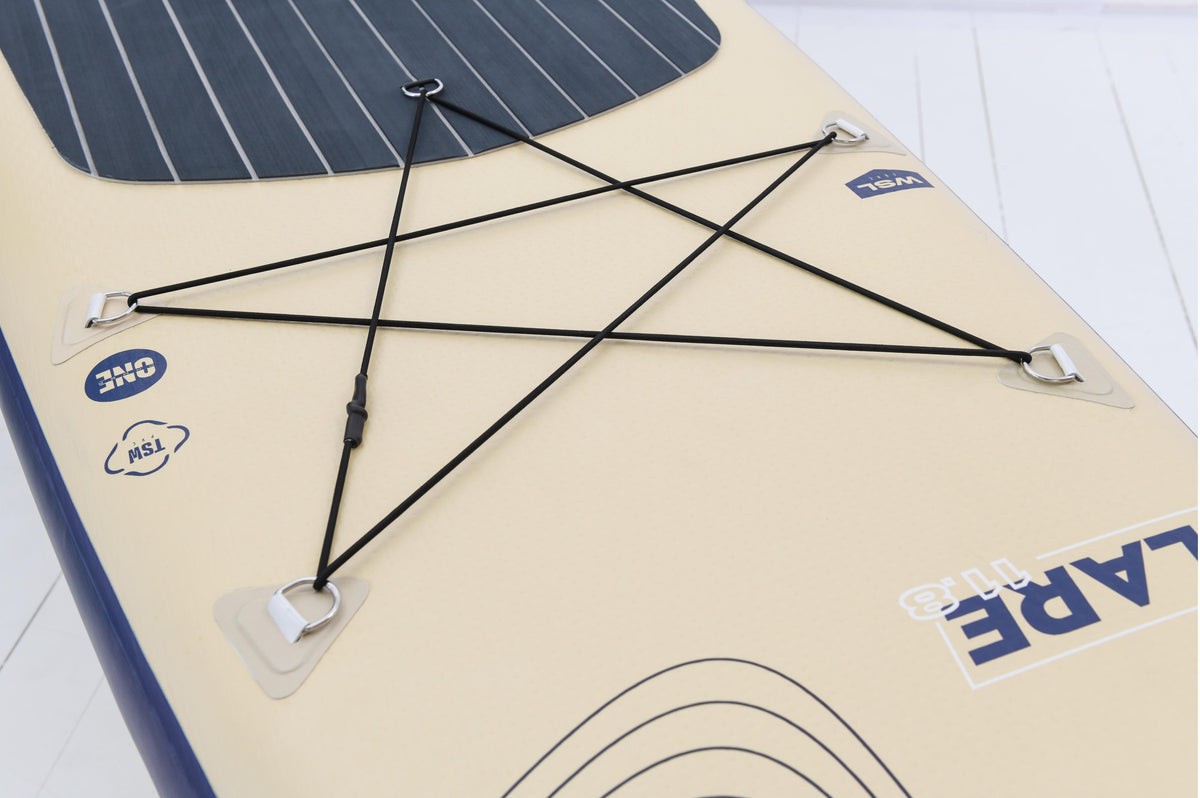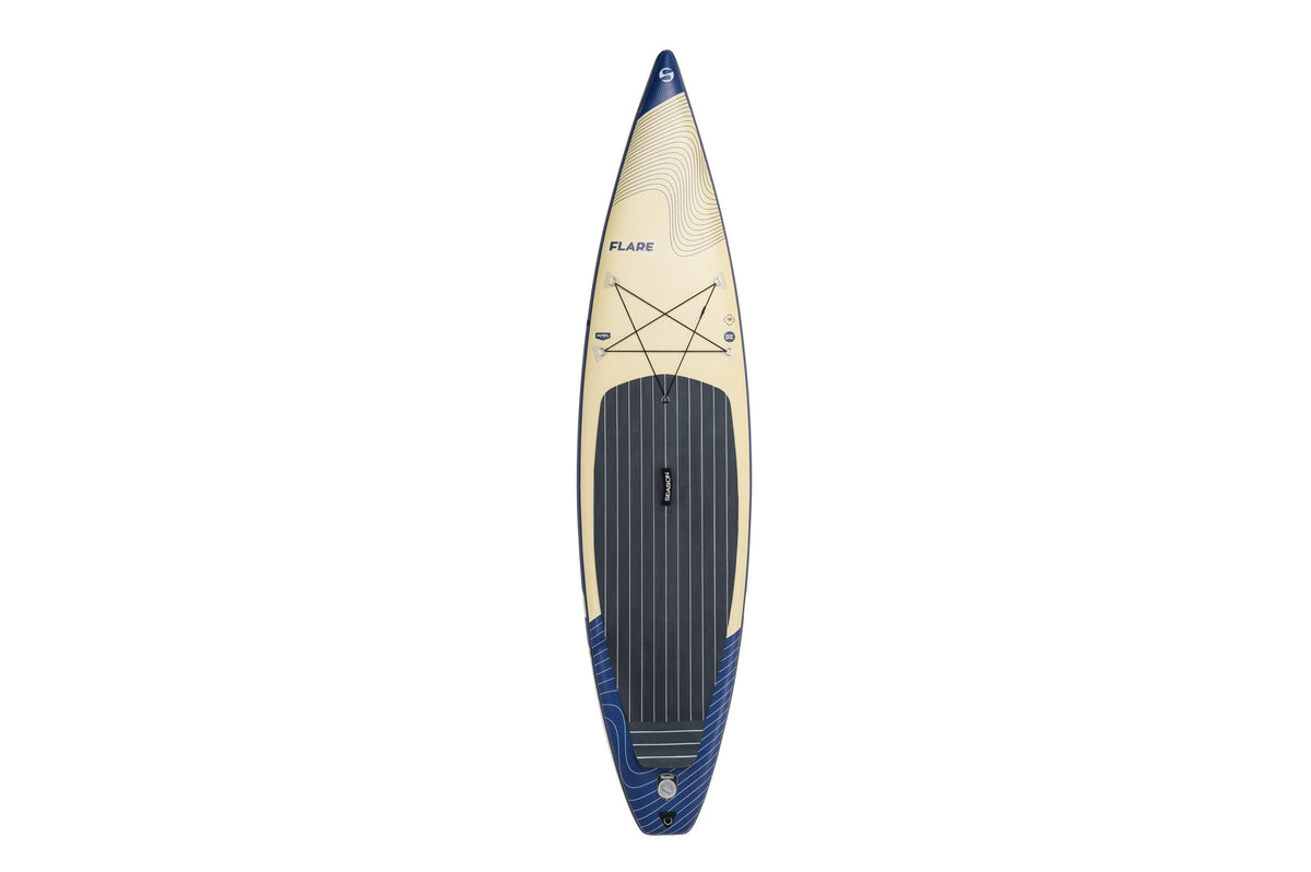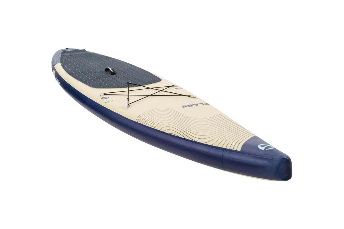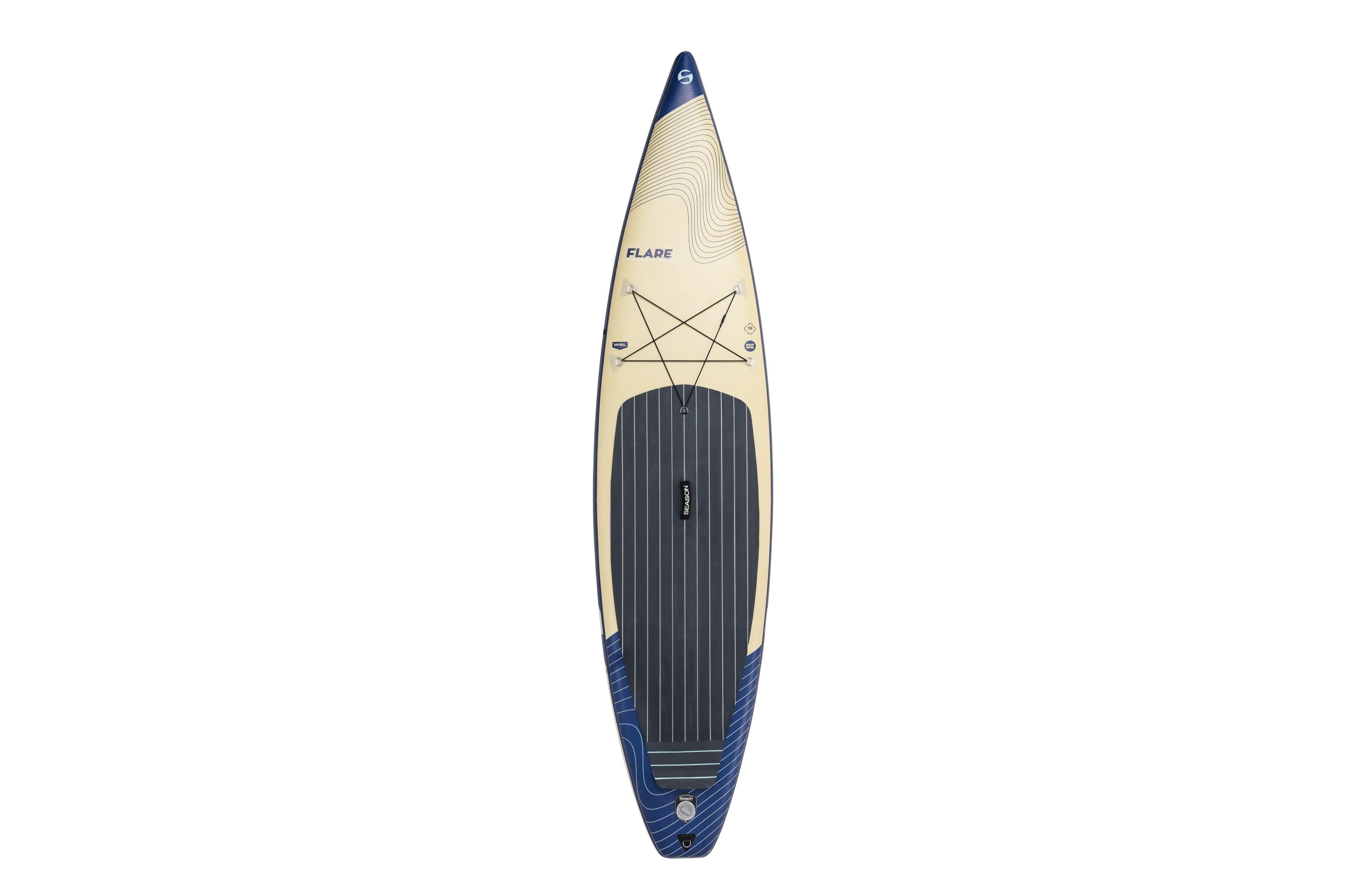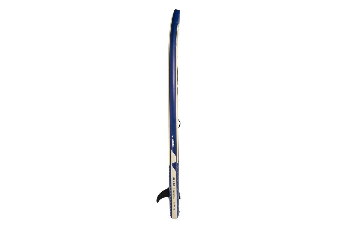 Das Flare 11.8 ist die leichtere und etwas einfachere Version des Flare Pro. Das Board ist für viele Einsatzbereiche geeignet und wird fast jedem Allround-Anspruch gerecht. Der Shape mit der breiten Standfläche und der schlanken Nose geben dem Board Standstabilität auch bei geringen Geschwindigkeiten, was das Spielen auf dem Wasser erleichtert. Die Form eines langen Tropfens lässt das Board aber auch gut gleiten. Da die Standfläche viel Volumen hat, trägt das Board auch etwas mehr Belastung. Die grosse EVA Standfläche ist mit einem trittsicheren Prägemuster ausgestattet. Das Board kann bei Niedrigwasser mit einer Flexfin gefahren werden, ohne die Gefahr das Finnen abbrechen. Somit ist man auch auf Flüssen gut unterwegs. Die Woven Dropstitch Konstruktion ist äusserst leicht und damit auch leicht zu tragen. Die Double Sidewall ist robust, schützt das Board vor Abrieb und macht das Board zusätzlich noch etwas steifer. Das mitgelieferte Zubehör lässt sich komplett im Backpack verstauen und somit auch gut transportieren. Dank der sehr leichten Konstruktion ist die Flare Line gut für SUP Trips mit ÖV Nutzung geeignet.