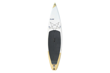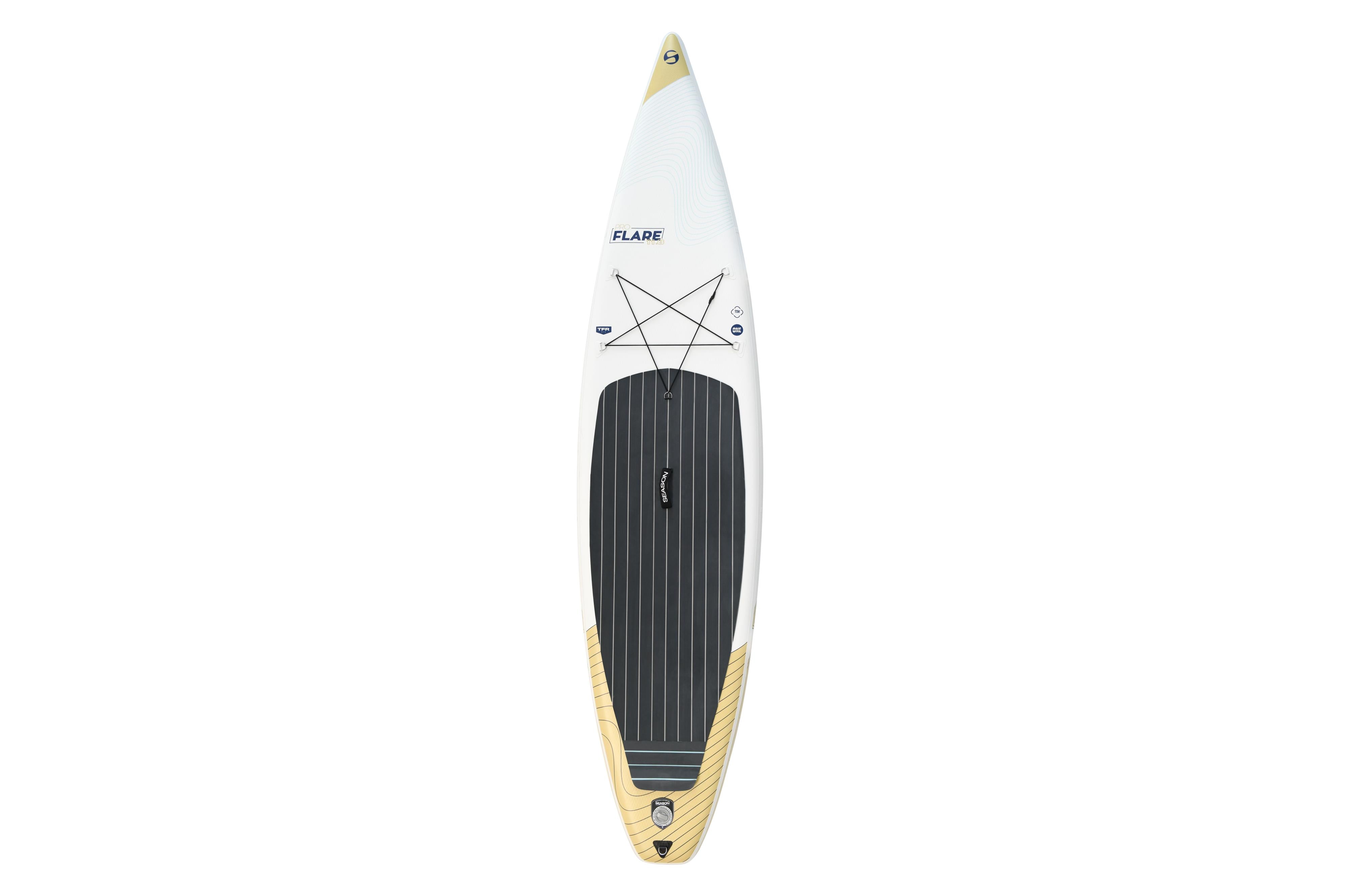 Das Flare Pro 11.8 ist eine Weiterentwicklung des sehr erfolgreichen Cruisers von 2020. Das Board ist für viele Einsatzbereiche geeignet und wird oft für längere Touren mit Gepäck oder auch auf leicht fliessenden Gewässern eingesetzt. Der Shape mit der breiten Standfläche und der schlanken Nose geben dem Board Standstabilität auch bei geringen Geschwindigkeiten, was das Spielen auf dem Wasser erleichtert. Die Form eines langen Tropfens lässt das Board aber auch gut gleiten. Da die Standfläche viel Volumen hat, trägt das Board auch etwas mehr Belastung. Die grosse EVA Standfläche ist mit einem Längsrillen Muster ausgestattet. Das Board kann auch bei Niedrigwasser mit einer Flexfin gefahren werden, ohne die Gefahr das Finnen abbrechen.