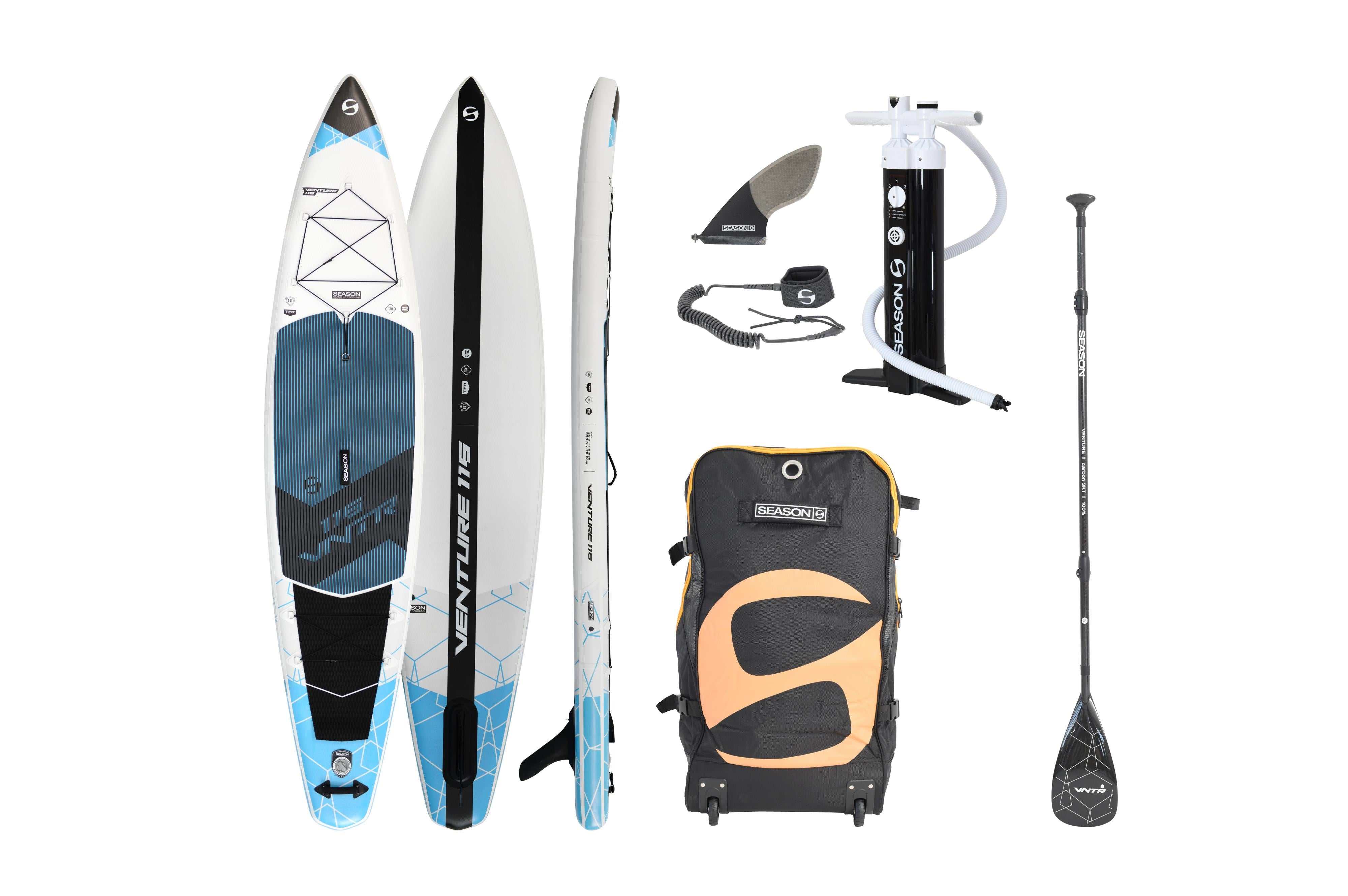 Zur qualitativ hochwertigsten Konstruktion gehört auch hochwertiges Zubehör. So ist die Tripple Action Gris Pumpe im Lieferumfang enthalten, wie auch ein Carbon Paddel und eine grosse und starke Backpack-Tasche mit Rollen und Aussenfach. Das Venture erfüllt jeden Anspruch im Touring Bereich und kann ohne Zuladung auch für schnelle Trainingsrunden genutzt werden.