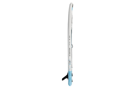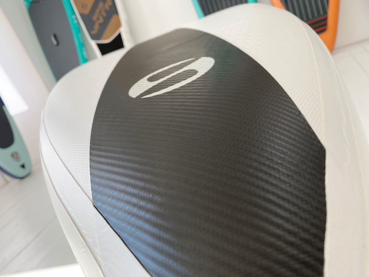 Die Konstruktion ist ebenfalls speziell und auf Steiffigkeit ausgelegt. So hat das Board neben dem hochwertigen Double Layer Fusion Woven Material eine 3-Lagen Seitenkonstruktion. Die 3. Seitenlage sorgt für weitere Profilstabilität und schützt die Konstruktionslagen 1 und 2 vor Abrieb und Schäden. Dank des Woven Materials bleibt das Board mit nur 8.9kg aber sehr leicht und deshalb auch wendig.