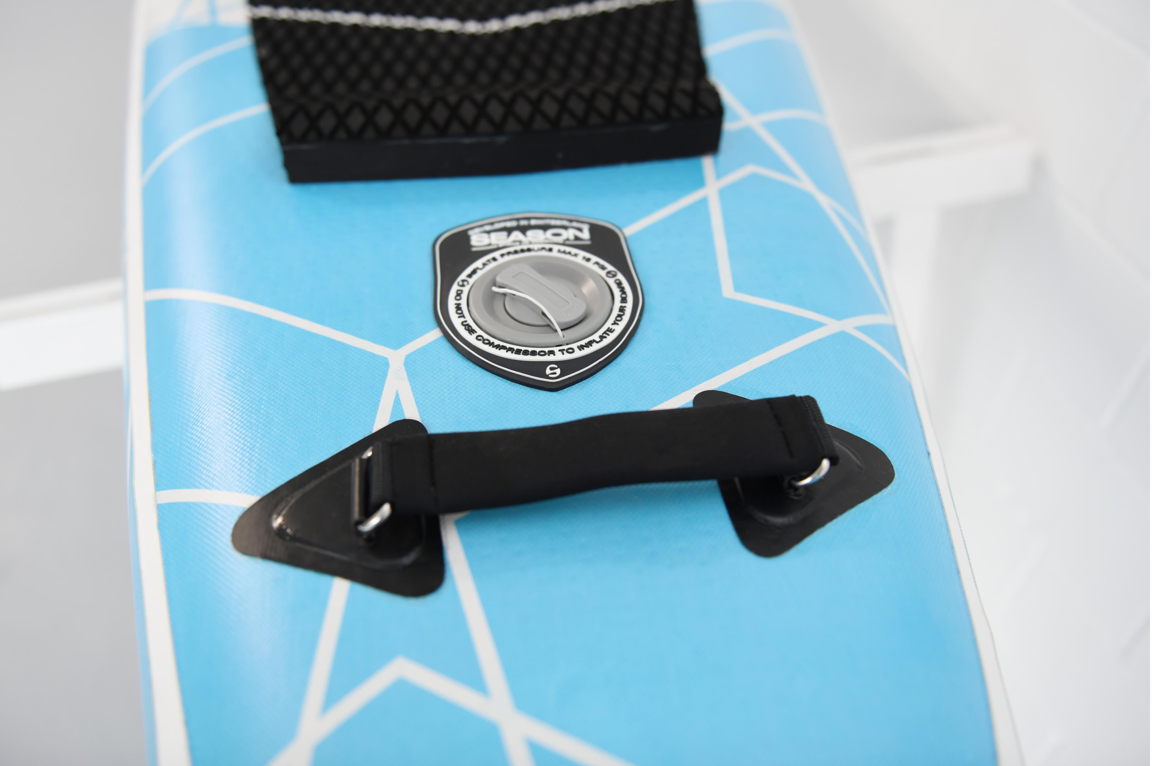 Das 11.6 Venture ist eine neue Entwicklung und ist auf Touring und Cruising ausgelegt. Der Shape wurde in vielen Stunden auf dem Wasser kontinuierlich optimiert und bietet eine gute Stabiität bei sehr gutem Geradeauslauf. Zudem wurde ein neues EVA mit Längsrillen-Profil entwickelt, die den Stand beim Paddeln enorm verbessert hat. Die Rillen bieten sehr guten Halt bei seitlichen Kräften und unterstützen deshalb auch die Paddelperformance. Die spezielle Netzanordnung ermöglichen es, eine Trinkflasche direkt vor dem Griff und auf dem Pad sicher zu platzieren. Der hintere Netzbereich ist so platziert, dass das Gewicht optimal austariert ist.